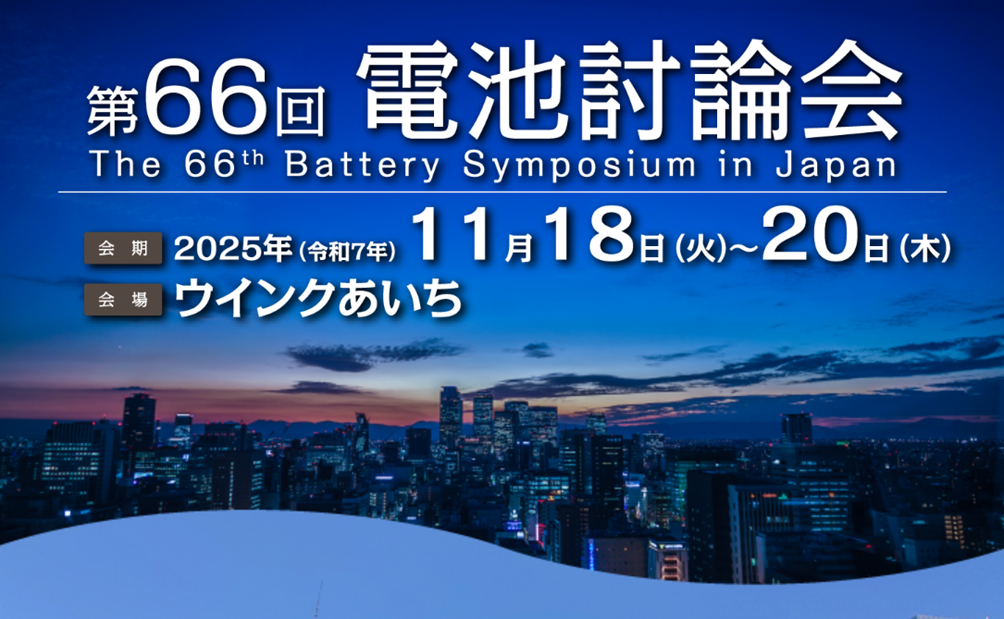 2025年11月18日(火)-20日(木)の3日間 名古屋 ウインクあいち にて開催されます第66回 電池討論会に企業展示いたします。